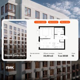Продаётся 1-комн. квартира площадью 32,6 кв.м на 15 этаже 15 этажного дома (Корпус 16.1, Секция 4) проекта ПИК Белая Дача парк. Светлый просторный подъезд на уровне земли, функциональная планировка, большие окна, c отделкой.
