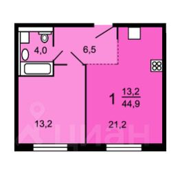 Евродвушка! Самая лучшая планировка и самая большая площадь 1-ком. квартир в этих домах! Кухня-гостиная 21 кв. м. и спальная комната 13 кв. м. В этой секции на этаже всего 5 квартир. Хороший вид из окон, не как в других секциях окна в окна.