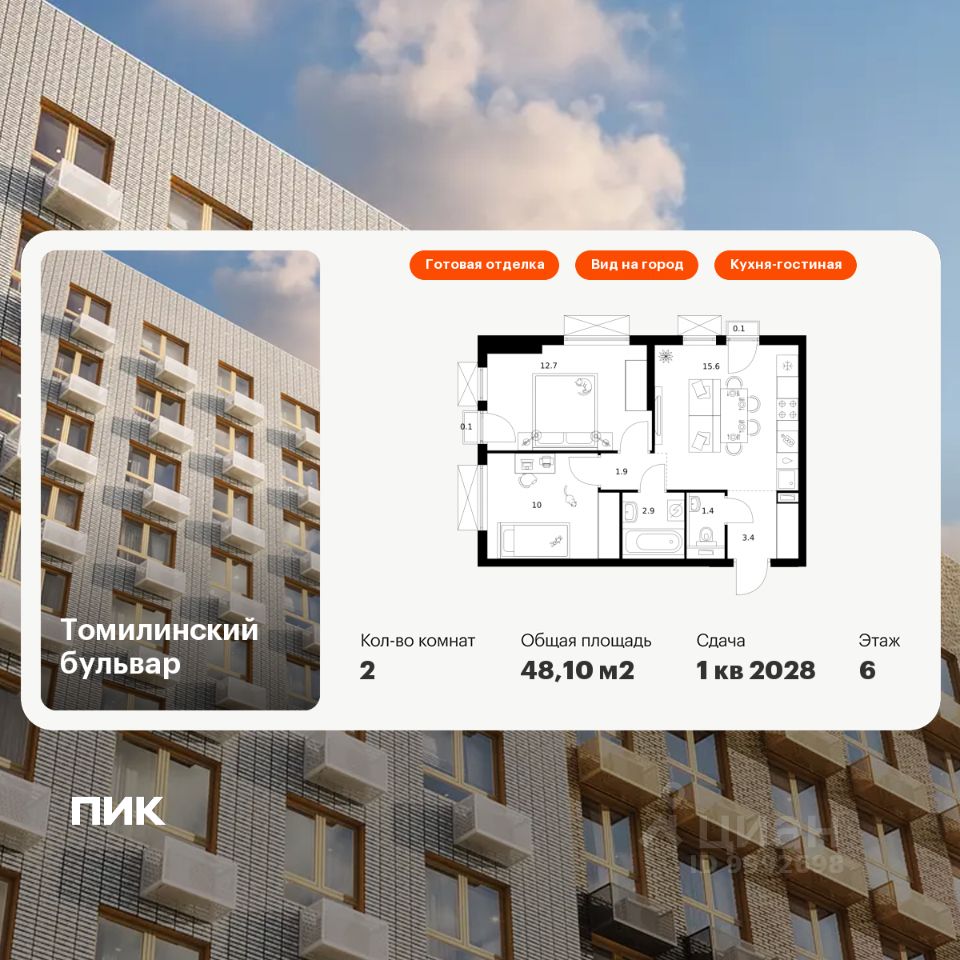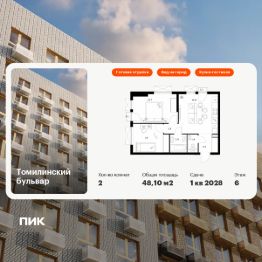 Продаётся 2-комн. квартира площадью 48,1 кв.м на 6 этаже 25 этажного дома (Корпус 5-8, Секция 1) проекта ПИК Томилинский бульвар. Светлый просторный подъезд на уровне земли, функциональная планировка, большие окна, c отделкой.