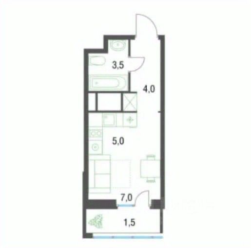 Объект отличается рациональной планировкой: 7кв. м отведено под жилую зону, 4кв. м занимает кухня, что позволяет эффективно использовать пространство.