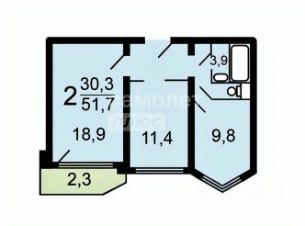 Двухкомнатная квартирa, расположенная по aдресу: Котельники, Южный микрорайон, 6