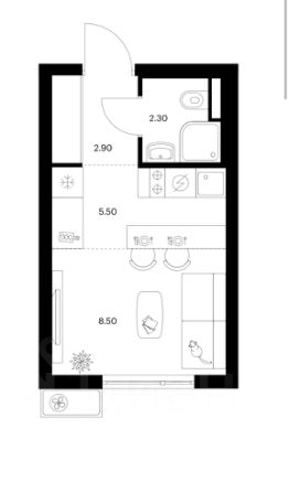 Квартира студия 19,2 м2 нового формата ПИК с окнами в пол, в строящемся доме.