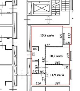 Большая кухня-гостиная 15,8 кв/м, две изолированных комнаты - 11,9 кв/м и 10,2 кв/м, два санузла, лоджия 2,5 кв/м., высота потолков 2,7 м., окна во двор. В каждой комнате установлены кондиционеры.