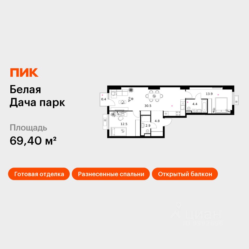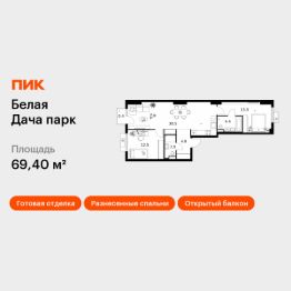 Продаётся 2-комн. квартира площадью 69,4 кв.м на 8 этаже 20 этажного дома (Корпус 16.2, Секция 7) проекта ПИК Белая Дача парк. Светлый просторный подъезд на уровне земли, функциональная планировка, большие окна, c отделкой.