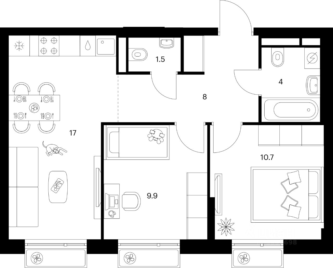 Рядом с кварталом много магазинов и развлекательных центров: "Outlet Village Белая дача", "МЕГА Белая дача", гипермаркет "Глобус", центр оптовой торговли Selgros. До Люберецких карьеров можно добраться на машине за 9 минут, а до парка "Кузьминки" — за полчаса. Артикул 1007819 (Застройщик АО "СЗ "Новый Горизонт")