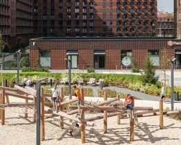 На территории квартала будут построены 22 дома, две школы, поликлиники и пять детских садов. Один из центральных элементов проекта — широкий пешеходный бульвар, где мы создали пространства для спорта, прогулок и отдыха. Яркой точкой притяжения стал ПлейХаб "Ферма" — масштабная игровая зона с домом-мельницей, искусственным ручьём и развивающими элементами для детей. В 2024 году ПлейХаб стал победителем "Всероссийской премии лучших проектов создания игровой среды" и получил награду "Лучшая реализация игровой площадки среди девелоперских проектов".