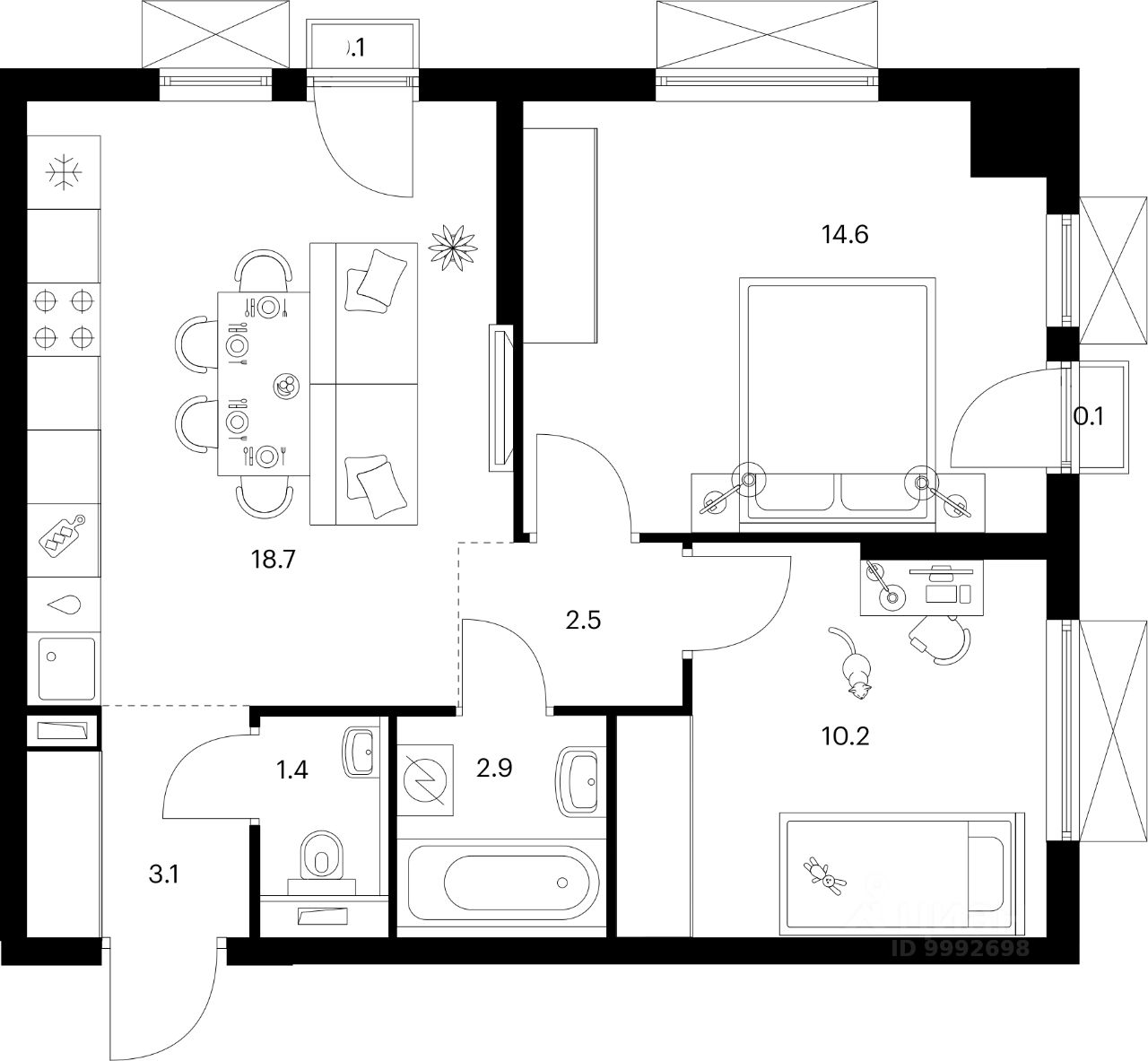 Продаётся 2-комн. квартира площадью 53,6 кв.м на 4 этаже 25 этажного дома (Корпус 5-8, Секция 1) проекта ПИК Томилинский бульвар. Светлый просторный подъезд на уровне земли, функциональная планировка, большие окна, c отделкой.