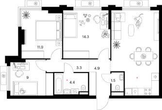 Рядом с кварталом много магазинов и развлекательных центров: "Outlet Village Белая дача", "МЕГА Белая дача", гипермаркет "Глобус", центр оптовой торговли Selgros. До Люберецких карьеров можно добраться на машине за 9 минут, а до парка "Кузьминки" — за полчаса. Артикул 1008015 (Застройщик АО "СЗ "Новый Горизонт")