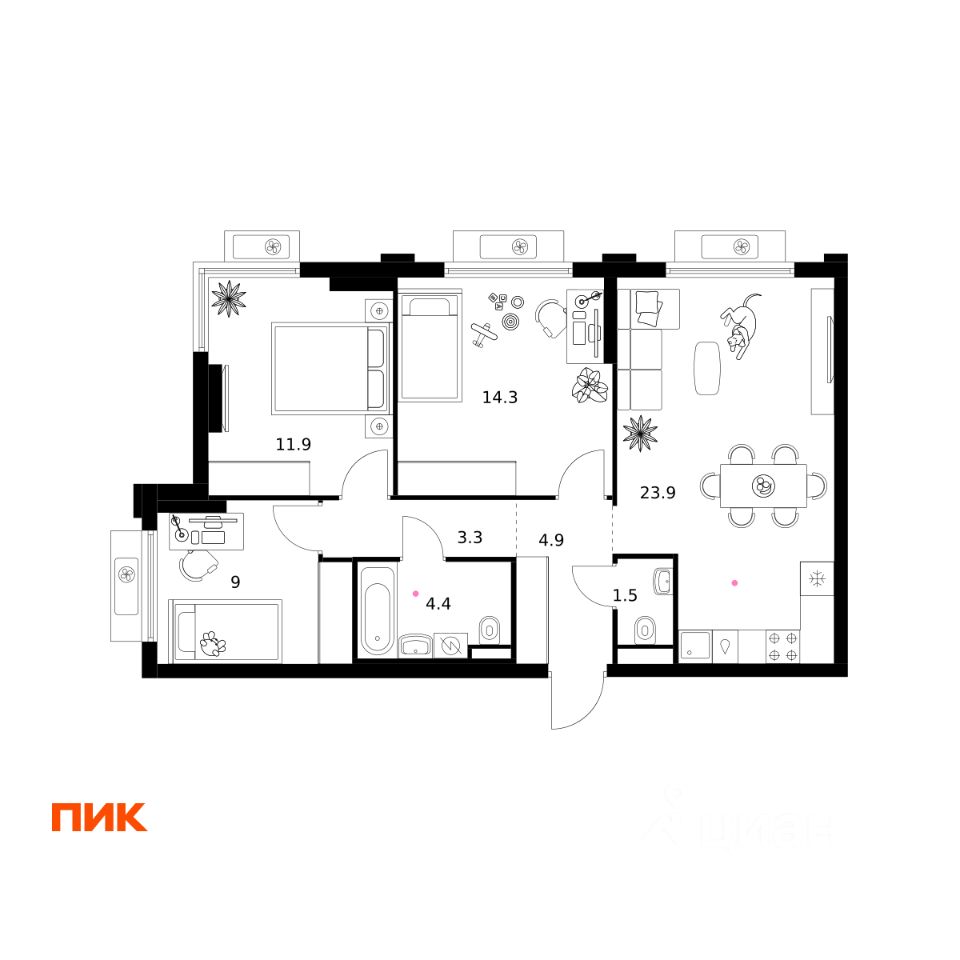 Продаётся 3-комн. квартира площадью 73,2 кв.м на 8 этаже 19 этажного дома (Корпус 16.1, Секция 3) проекта ПИК Белая Дача парк. Светлый просторный подъезд на уровне земли, функциональная планировка, большие окна, c отделкой.