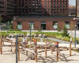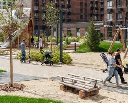 На территории квартала будут построены 22 дома, две школы, поликлиники и пять детских садов. Один из центральных элементов проекта — широкий пешеходный бульвар, где мы создали пространства для спорта, прогулок и отдыха. Яркой точкой притяжения стал ПлейХаб "Ферма" — масштабная игровая зона с домом-мельницей, искусственным ручьём и развивающими элементами для детей. В 2024 году ПлейХаб стал победителем "Всероссийской премии лучших проектов создания игровой среды" и получил награду "Лучшая реализация игровой площадки среди девелоперских проектов".