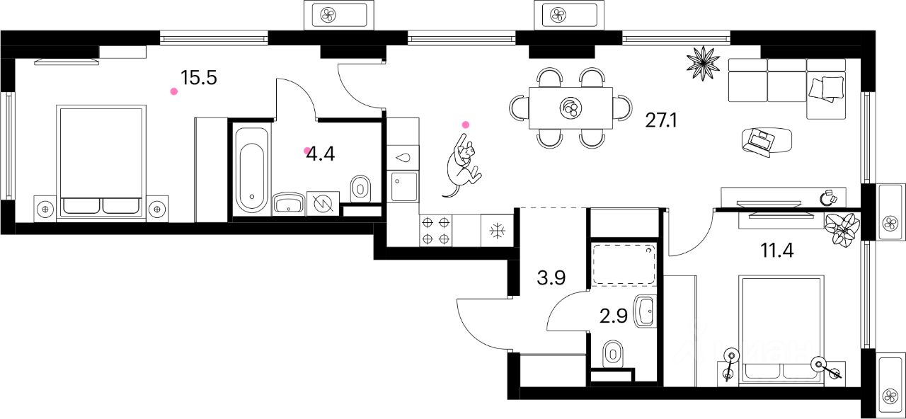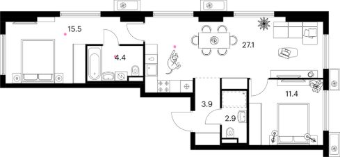 Рядом с кварталом много магазинов и развлекательных центров: "Outlet Village Белая дача", "МЕГА Белая дача", гипермаркет "Глобус", центр оптовой торговли Selgros. До Люберецких карьеров можно добраться на машине за 9 минут, а до парка "Кузьминки" — за полчаса. Артикул 1008574 (Застройщик АО "СЗ "Новый Горизонт")