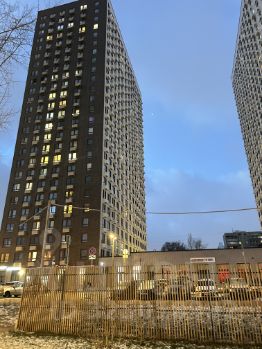 Дом новый, оборудован двумя пассажирскими и двумя грузовыми лифтами, поэтому можно не беспокоиться о комфорте и удобстве перемещения. На территории дома предусмотрена наземная парковка, что является большим плюсом для владельцев автомобилей.