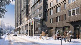 Выдающаяся архитектура проекта особенно выделяется в темное время суток благодаря фасадной подсветке. Атмосферные лобби с мягкой мебелью и декором оснащены видеокамерами, дополнительным преимуществом являются передовые технологии, обеспечивающие безопасность и приватность.