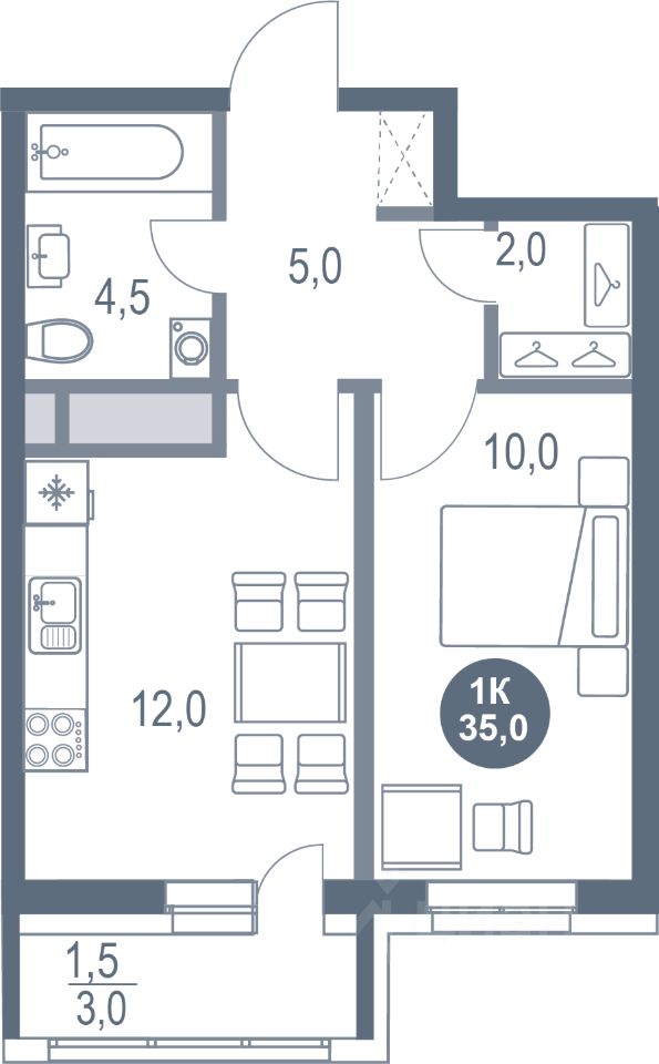 Продается однокомнатная квартира 296 в новостройке ЖК "Котельники парк" по адресу Московская область, г. Дзержинский, мкр. Новые Котельники, корп. 12. Общая площадь квартиры - 35.00 кв. м., этаж 5 из 25, секция 3. Стоимость квартиры - 6865880 Р. Срок сдачи - 4 квартал 2026 года. Более подробная информация по телефону.