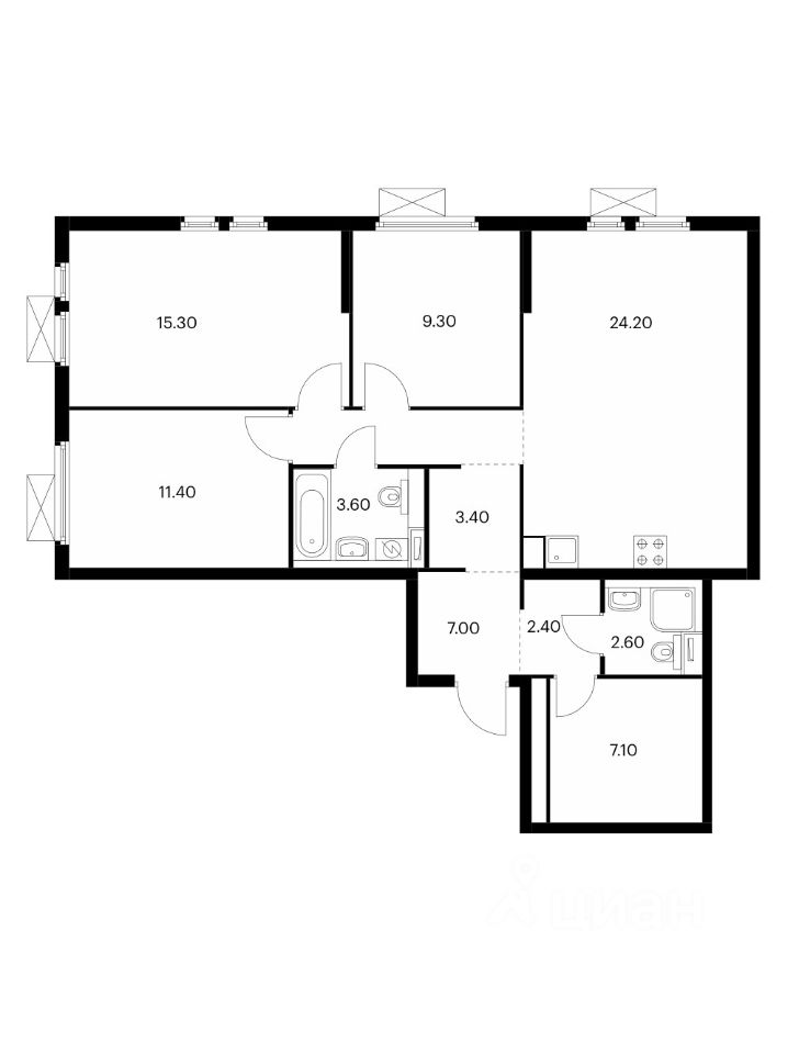Продаётся просторная 3-комнатная квартира 86,3 м² в ЖК Кузьминский лес