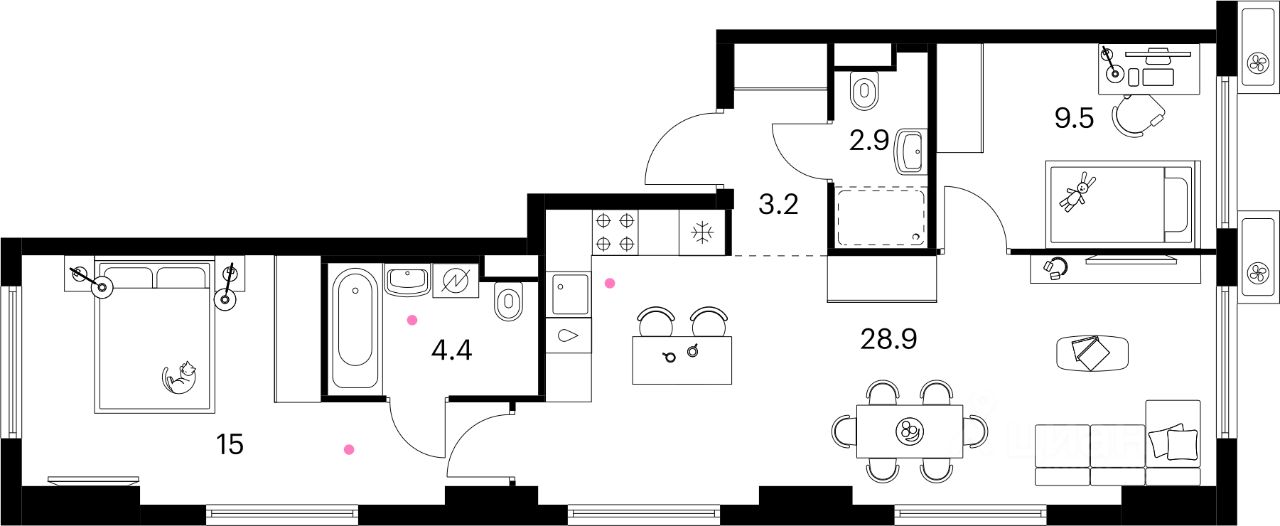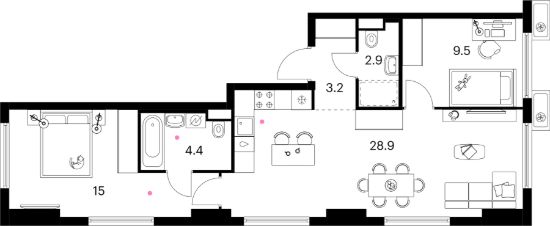 Рядом с кварталом много магазинов и развлекательных центров: "Outlet Village Белая дача", "МЕГА Белая дача", гипермаркет "Глобус", центр оптовой торговли Selgros. До Люберецких карьеров можно добраться на машине за 9 минут, а до парка "Кузьминки" — за полчаса. Артикул 1008077 (Застройщик АО "СЗ "Новый Горизонт")