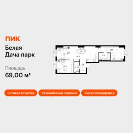 Продаётся 2-комн. квартира площадью 69 кв.м на 9 этаже 20 этажного дома (Корпус 16.2, Секция 7) проекта ПИК Белая Дача парк. Светлый просторный подъезд на уровне земли, функциональная планировка, большие окна, c отделкой.