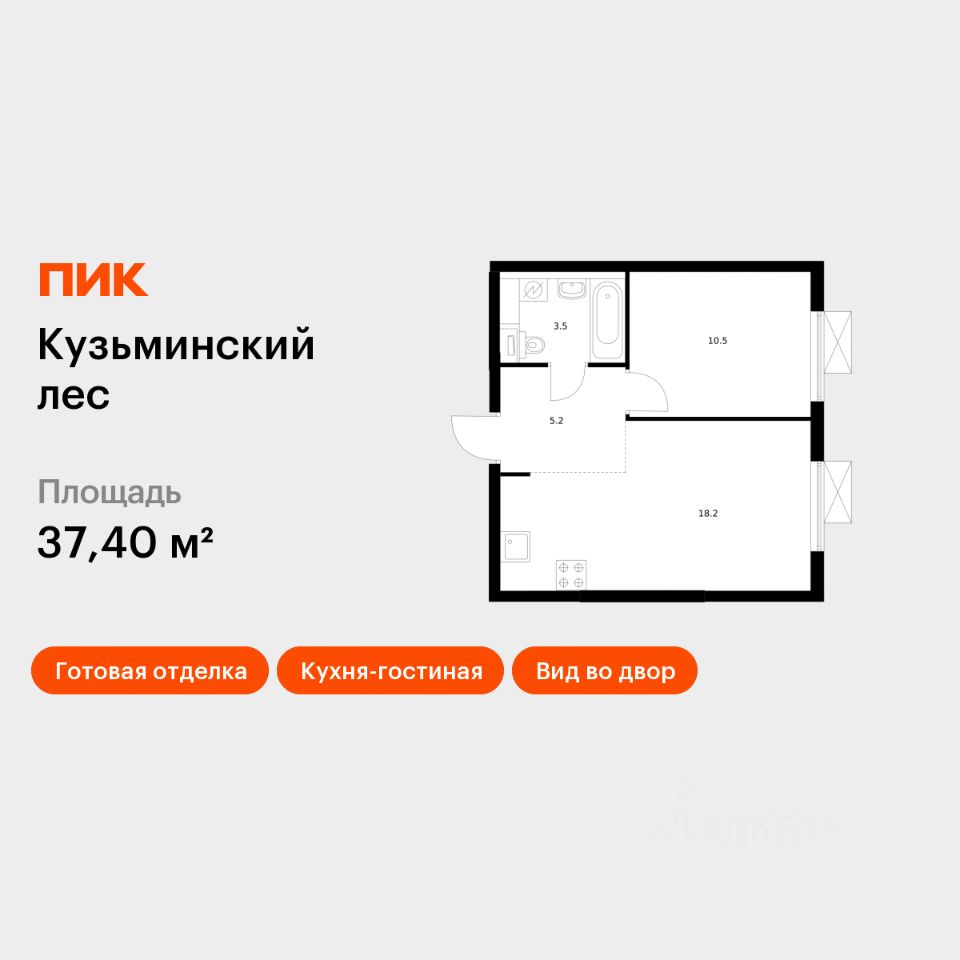Продаётся 1-комн. квартира площадью 37,4 кв.м на 24 этаже 25 этажного дома (Корпус 10, Секция 1) проекта ПИК Кузьминский лес. Светлый просторный подъезд на уровне земли, функциональная планировка, большие окна, c отделкой.