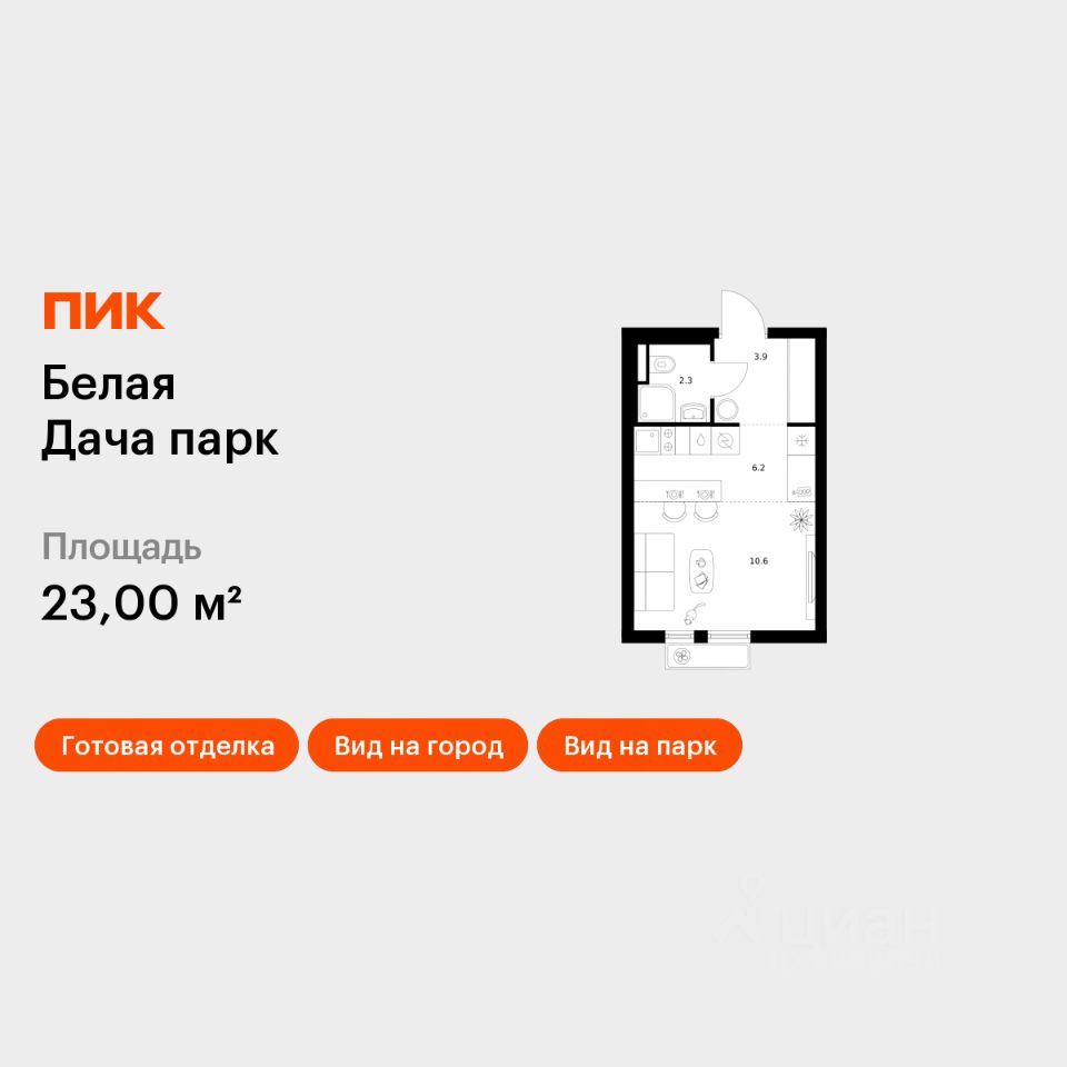 Продаётся квартира-студия площадью 23 кв.м на 8 этаже 14 этажного дома (Корпус 16.1, Секция 2) проекта ПИК Белая Дача парк. Светлый просторный подъезд на уровне земли, функциональная планировка, большие окна, c отделкой.