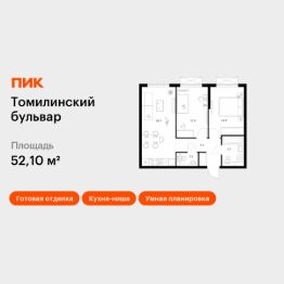 Продаётся 2-комн. квартира площадью 52,1 кв.м на 21 этаже 25 этажного дома (Корпус 5-8, Секция 1) проекта ПИК Томилинский бульвар. Светлый просторный подъезд на уровне земли, функциональная планировка, большие окна, c отделкой.
