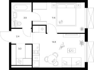 Продаётся 1-комн. квартира площадью 35,6 кв.м на 24 этаже 25 этажного дома (Корпус 5-8, Секция 2) проекта ПИК Томилинский бульвар. Светлый просторный подъезд на уровне земли, функциональная планировка, большие окна, c отделкой.