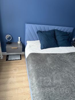В спальне кровать с подьемным механизмом 160х200, тумба и шкаф.