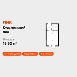 Продаётся квартира-студия площадью 19,9 кв.м на 13 этаже 25 этажного дома (Корпус 10, Секция 1) проекта ПИК Кузьминский лес. Светлый просторный подъезд на уровне земли, функциональная планировка, большие окна, c отделкой.