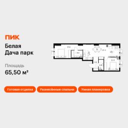 Продаётся 2-комн. квартира площадью 65,5 кв.м на 14 этаже 25 этажного дома (Корпус 16.2, Секция 5) проекта ПИК Белая Дача парк. Светлый просторный подъезд на уровне земли, функциональная планировка, большие окна, c отделкой.
