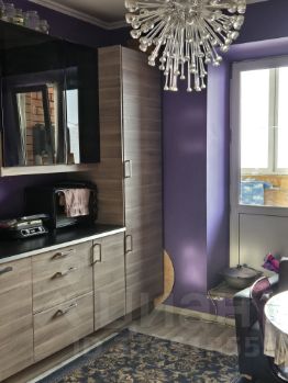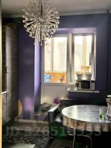 Кухня полностью укомплектована: встроенная кухня со встроенным холодильником и посудомоечной машиной, микроволновка, сенсорная плита, вытяжка и абсолютно вся посуда. Обеденная зона с диванчиком и стульями. Интересная цветовая гамма: смоки с фиолетовым.
