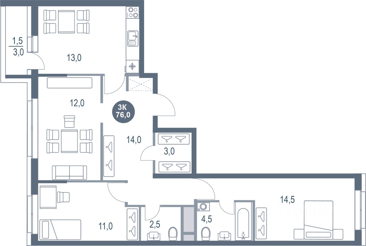 Продается трехкомнатная квартира 288 в новостройке ЖК "Котельники парк" по адресу Московская область, г. Дзержинский, мкр. Новые Котельники, корп. 11. Общая площадь квартиры - 76.00 кв. м., этаж 21 из 25, секция 2. Стоимость квартиры - 13819408 Р. Срок сдачи - 4 квартал 2026 года. Более подробная информация по телефону.