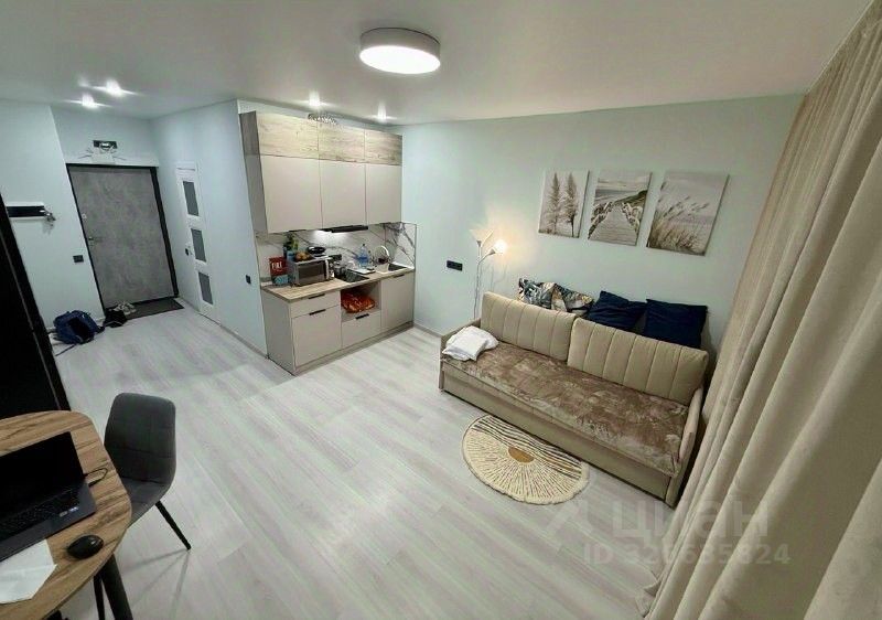 Пpoдaю видовую квартиру-студию в монолитном ЖК "Нoвые Kотeльники" с готовой отделкой, полностью укомплектованную всей необходимой новой мебелью и техникой. Всё, что на фото, остаётся новым хозяевам, в том числе техника. Заезжай и живи.