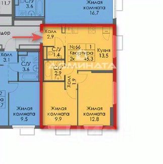 Корпус 10, этаж 7 (из 25), секция 1, кв.66.