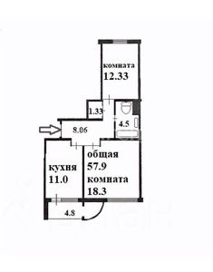 57,9 м²