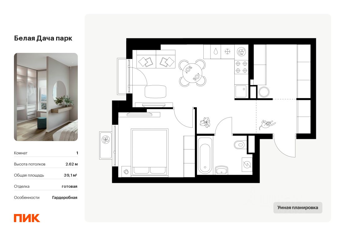 Продаётся 1-комн. квартира площадью 39,1 кв.м на 16 этаже 25 этажного дома (Корпус 16.1, Секция 1) проекта ПИК Белая Дача парк. Светлый просторный подъезд на уровне земли, функциональная планировка, большие окна, c отделкой.