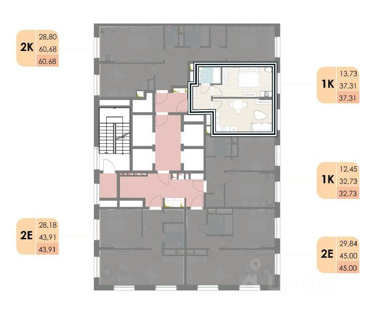 Площадь: 37,31 м² — оптимальное пространство с функциональной планировкой.