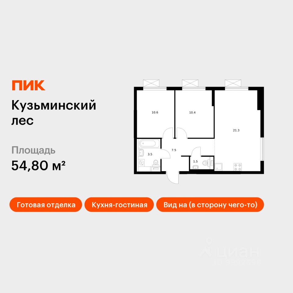 Продаётся 2-комн. квартира площадью 54,8 кв.м на 18 этаже 25 этажного дома (Корпус 10, Секция 1) проекта ПИК Кузьминский лес. Светлый просторный подъезд на уровне земли, функциональная планировка, большие окна, c отделкой.