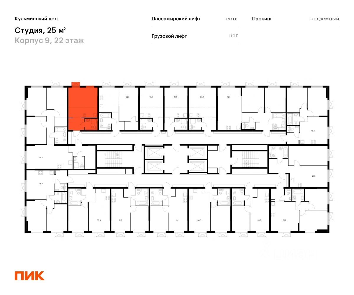 Продаётся квартира-студия площадью 25,2 кв.м на 22 этаже 25 этажного дома (Корпус 9, Секция 1) проекта ПИК Кузьминский лес. Светлый просторный подъезд на уровне земли, функциональная планировка, большие окна, c отделкой.