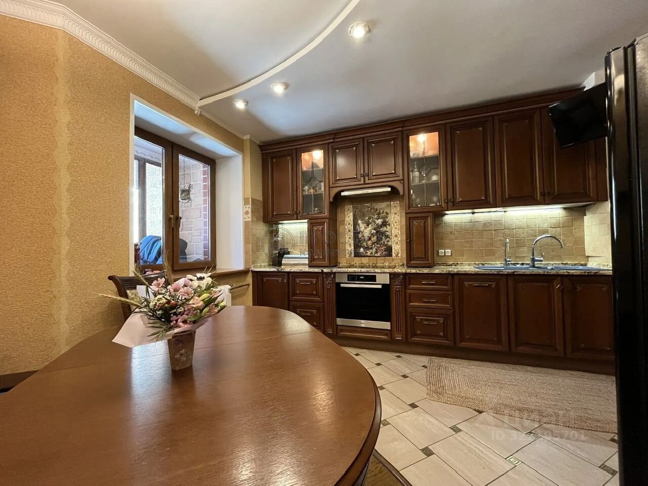 • Большая кухня с деревянным гарнитуром, гранитной столешницей, посудомоечной машиной, системой фильтрации воды и измельчителем отходов, холодильник с ледогенератором, дорогая встраиваемая техника.