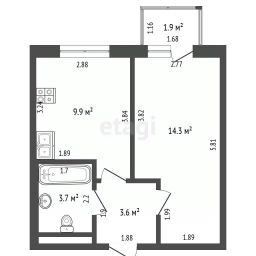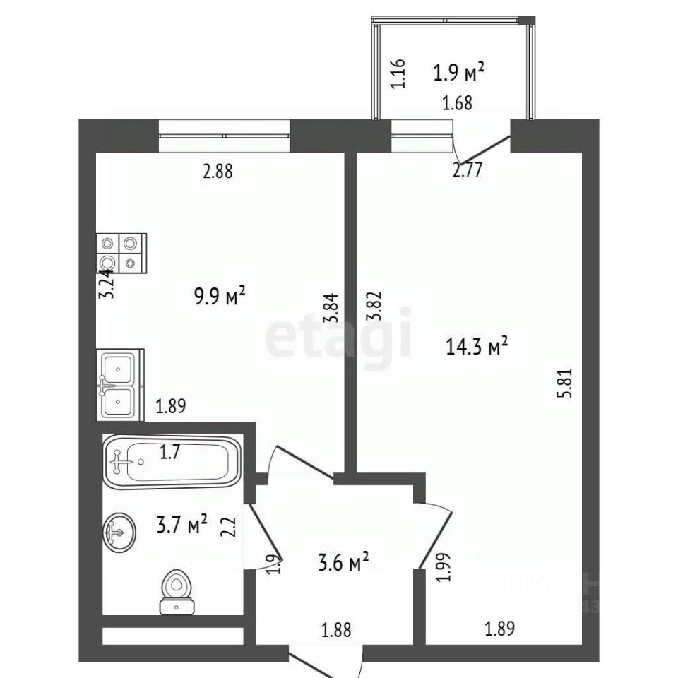 Вашему вниманию предлагается, однокомнатная квартира площадью 32 м2.