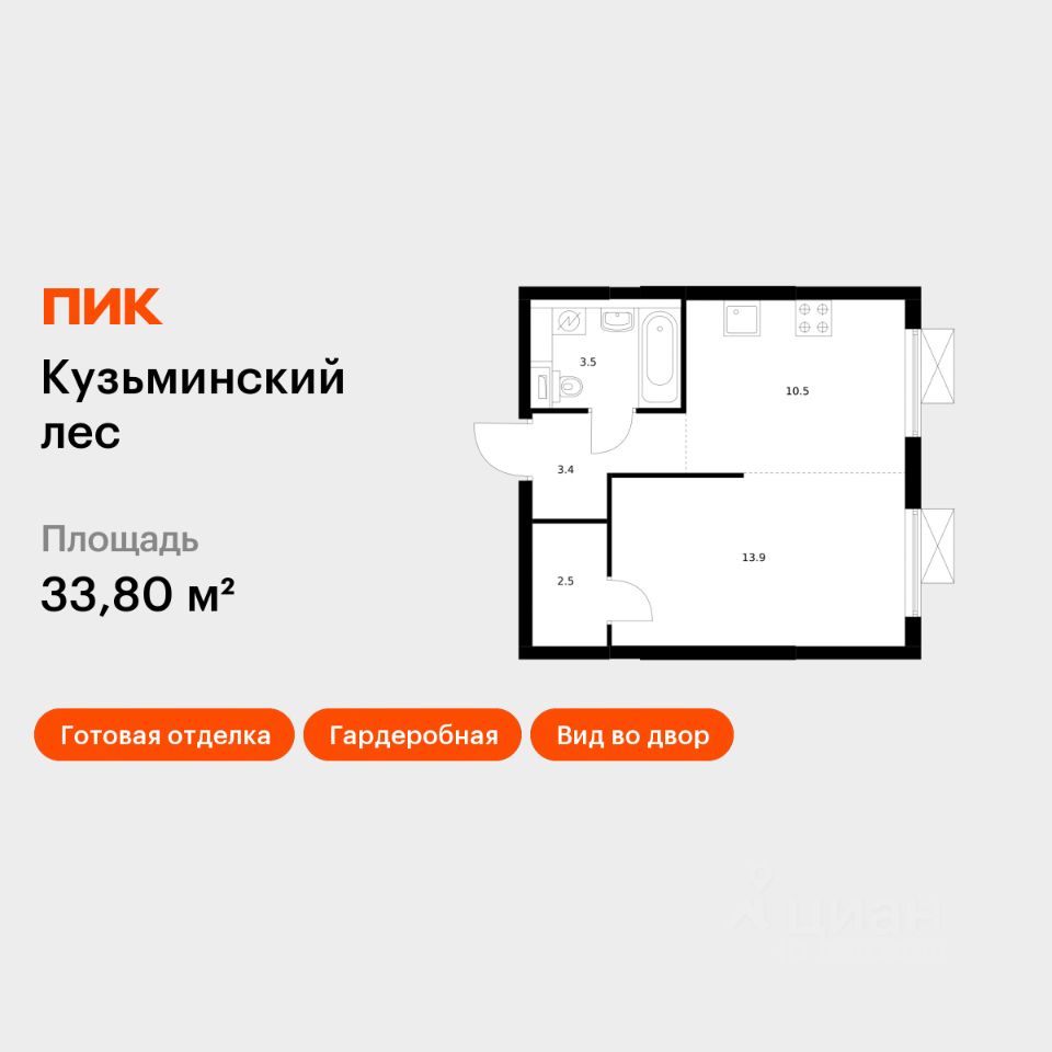 Продаётся 1-комн. квартира площадью 33,8 кв.м на 18 этаже 25 этажного дома (Корпус 9, Секция 1) проекта ПИК Кузьминский лес. Светлый просторный подъезд на уровне земли, функциональная планировка, большие окна, c отделкой.