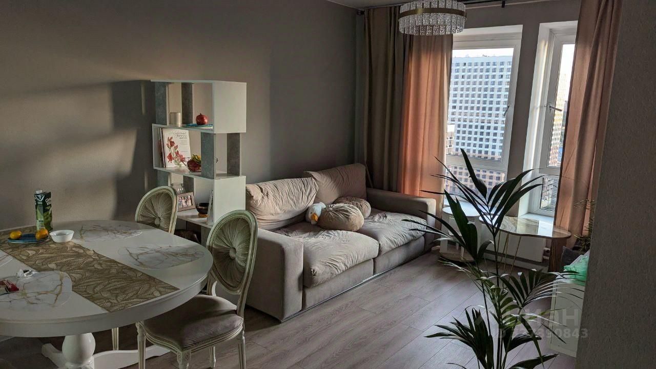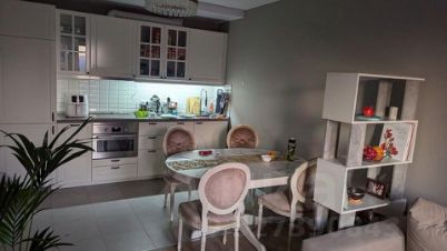 Квартира полностью готова к проживанию и продаётся вместе с кухонным гарнитуром, встроенной техникой и мебелью. Просторная кухня-гостиная создаёт комфортное общее пространство, предусмотрены два санузла.