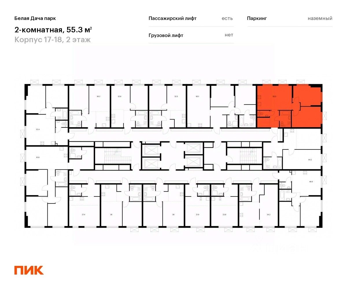 Продаётся 2-комн. квартира площадью 54,7 кв.м на 2 этаже 25 этажного дома (Корпус 17-18, Секция 18) проекта ПИК Белая Дача парк. Светлый просторный подъезд на уровне земли, функциональная планировка, большие окна, c отделкой.