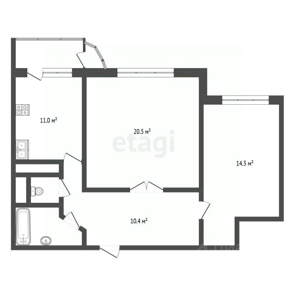 Функциональная планировка: две изолированные комнаты 20,5 м² и 14,5 м², и просторная кухня 11 м² с выходом на лоджию. В квартире оборудована гардеробная и кладовка.