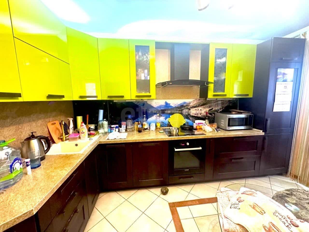 Ремонтом выполнен из дорогих, качественных материалов. В отделке использован итальянский кафель, установлены деревянные двери с витражами, два тёплых пола. Кухонный гарнитур остаётся в подарок.