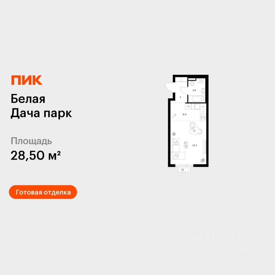 Продаётся квартира-студия площадью 28,5 кв.м на 7 этаже 12 этажного дома (Корпус 22.2, Секция 7) проекта ПИК Белая Дача парк. Светлый просторный подъезд на уровне земли, функциональная планировка, большие окна, c отделкой.