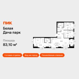 Продаётся 3-комн. квартира площадью 83,1 кв.м на 16 этаже 17 этажного дома (Корпус 22.1, Секция 3) проекта ПИК Белая Дача парк. Светлый просторный подъезд на уровне земли, функциональная планировка, большие окна, c отделкой.