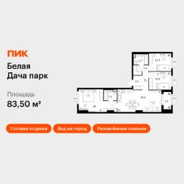 Продаётся 3-комн. квартира площадью 83,5 кв.м на 12 этаже 17 этажного дома (Корпус 22.1, Секция 3) проекта ПИК Белая Дача парк. Светлый просторный подъезд на уровне земли, функциональная планировка, большие окна, c отделкой.