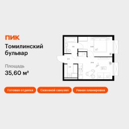 Продаётся 1-комн. квартира площадью 35,6 кв.м на 16 этаже 25 этажного дома (Корпус 5-8, Секция 2) проекта ПИК Томилинский бульвар. Светлый просторный подъезд на уровне земли, функциональная планировка, большие окна, c отделкой.