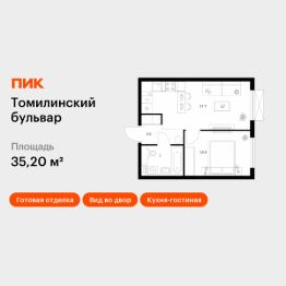Продаётся 1-комн. квартира площадью 35,2 кв.м на 17 этаже 25 этажного дома (Корпус 5-8, Секция 1) проекта ПИК Томилинский бульвар. Светлый просторный подъезд на уровне земли, функциональная планировка, большие окна, c отделкой.