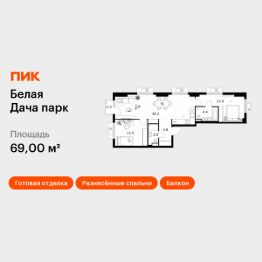 Продаётся 2-комн. квартира площадью 69 кв.м на 16 этаже 20 этажного дома (Корпус 16.2, Секция 7) проекта ПИК Белая Дача парк. Светлый просторный подъезд на уровне земли, функциональная планировка, большие окна, c отделкой.